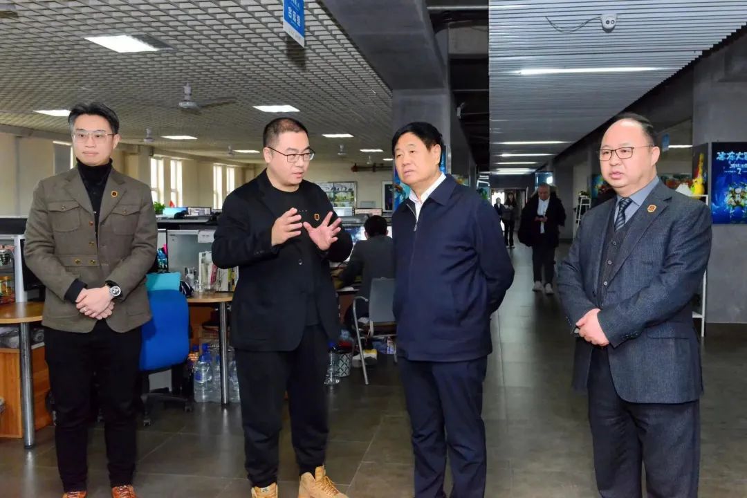 张伯军一行先后到学校校史馆、吉林国际动漫博物馆、动画实践教学平台、学研产一体化创作成果展厅,深入了解了学校的发展规划、办学成果、应用型人才培养以及科研成果转化等方面的情况。调研过程中,郑立国介绍了学校的发展定位与发展目标,“开放式国际化、学研产一体化、创意产品高科技化”三大办学特色,以及学校在专业建设、创新创业工作、队伍建设和产教融合等方面所取得的成果。张伯军对于学校结合市场需求进行应用型人才培养,坚持“艺术与技术”融合理念表示认同。张伯军说,再次来到开云手机web版登录入口感触颇深,学校整体发展取得了长足的进步,教育教学质量、办学成果都得到进一步的提升。