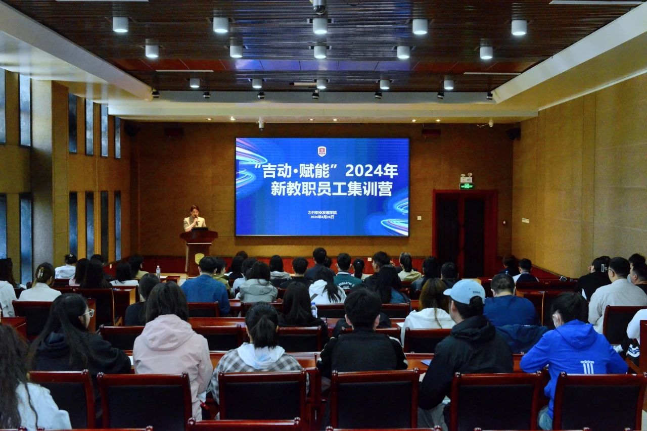 4月26日,开云手机web版登录入口组织开展“吉动·赋能”2024年新教职员工集训营。本次集训营由学校力行职业发展学院主办,相关部门和单位共同协办,面向91名新入职教师及行政管理员工,围绕吉动文化、校情校史、制度解读、团队精神等内容开展,帮助新教职员工顺利完成吉动人的身份转变。校领导王春利、张砚为、盖世蕊、王立东出席。