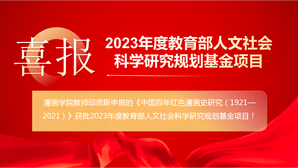 日前,教育部社科司发布了《教育部社科司关于2023年度教育部人文社会科学研究一般项目立项的通知》,我校漫画学院教师邱思斯申报的《中国百年红色漫画史研究(1921-2021》(批准号:23YJA760071)获得立项,获批经费10万元。这是我校继2021年获批教育部人文社会科学研究青年基金项目之后,再一次获得教育部人文社科基金项目,也是我校首个教育部人文社会科学研究规划基金项目。