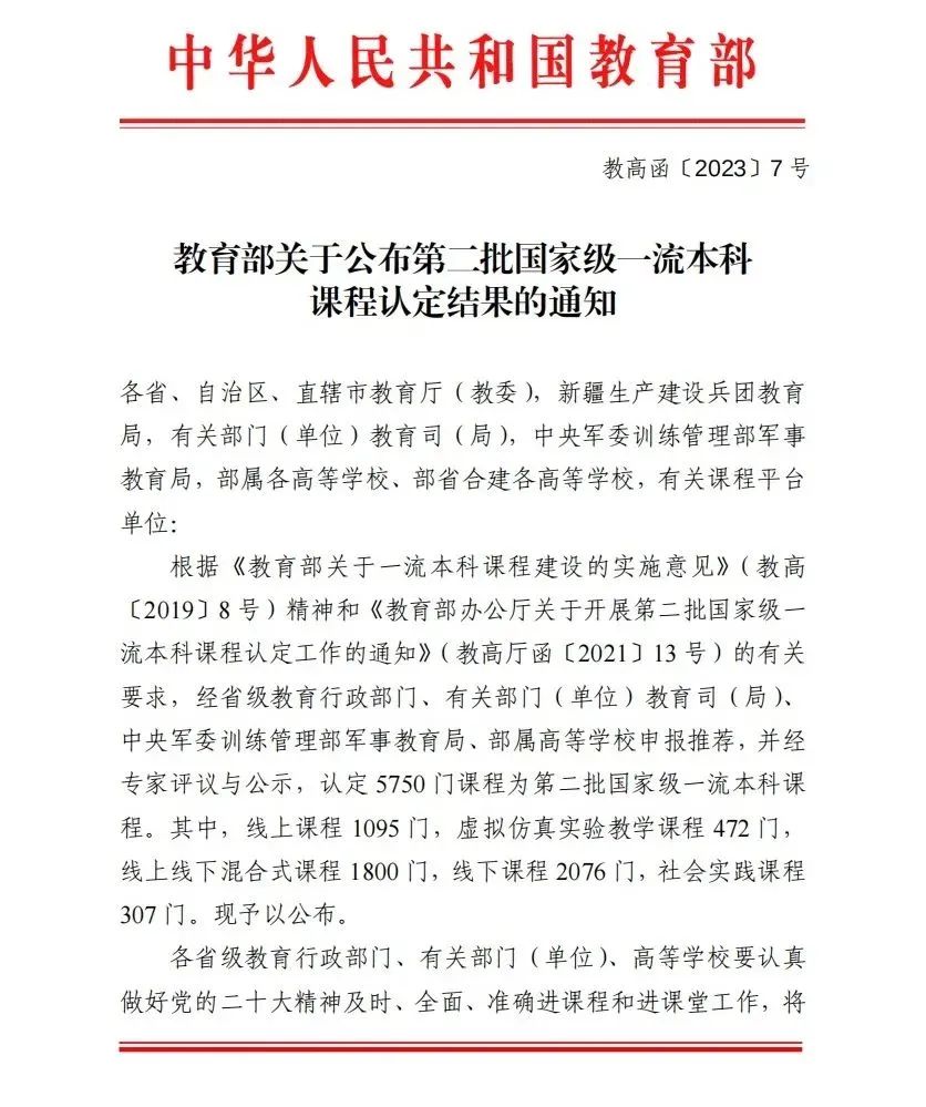 学校高度重视一流本科课程建设工作,建立了国家级、省级、校级三级一流本科课程和各专项课程(课程思政、创新创业教育、产教融合课程)两类课程建设体系,积极培育和建设各级各类优秀课程项目,持续推进课程思政改革、教学内容改革、教学方法改革、考试评价改革、教学团队建设等,取得了较好成效。