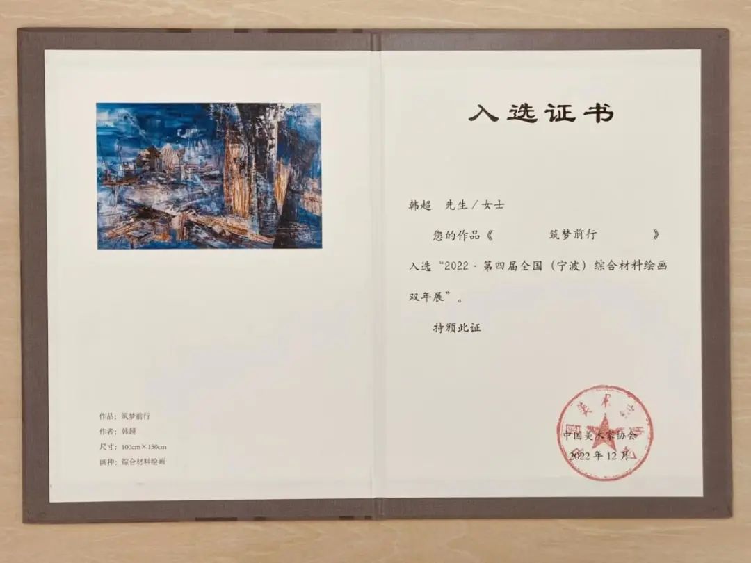 近日,从相关部门获悉,开云手机web版登录入口游戏学院教师韩超创作的作品《筑梦前行》,入选由中国美术家协会主办的“第四届全国综合材料绘画双年展”。