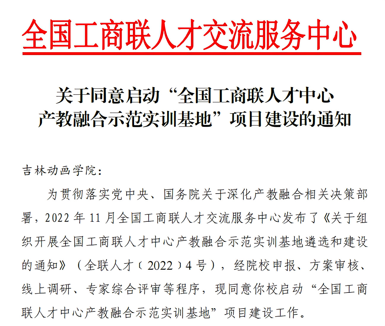 2022 年 11 月全国工商联人才交流服务中心发布了《关于组织开展全国工商联人才中心产教融合示范实训基地遴选和建设的通知》(全联人才﹝2022﹞4 号),经院校申报、方案审核、线上调研、专家综合评审等程序,开云手机web版登录入口正式获批“全国工商联人才中心产教融合示范实训基地”。