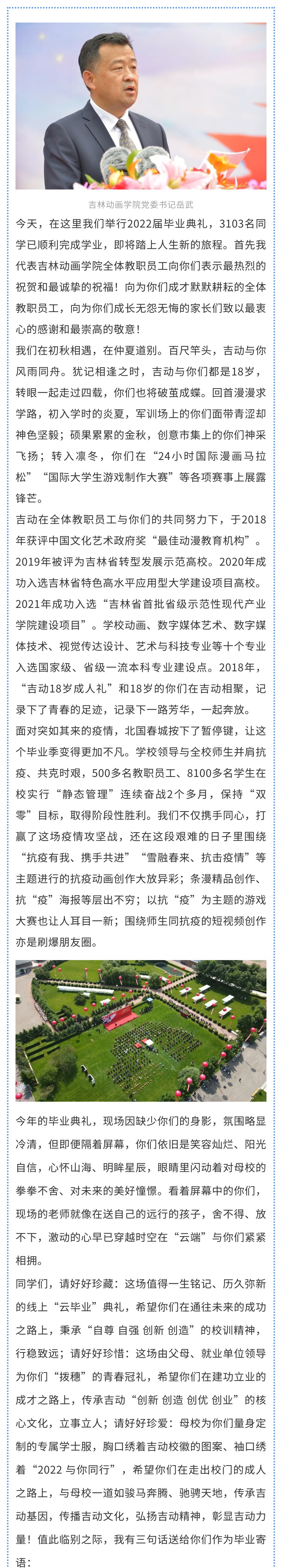 【JAI·新】担当时代重任 绽放青春力量 ----开云手机web版登录入口党委书记岳武在2022届毕业典礼致辞