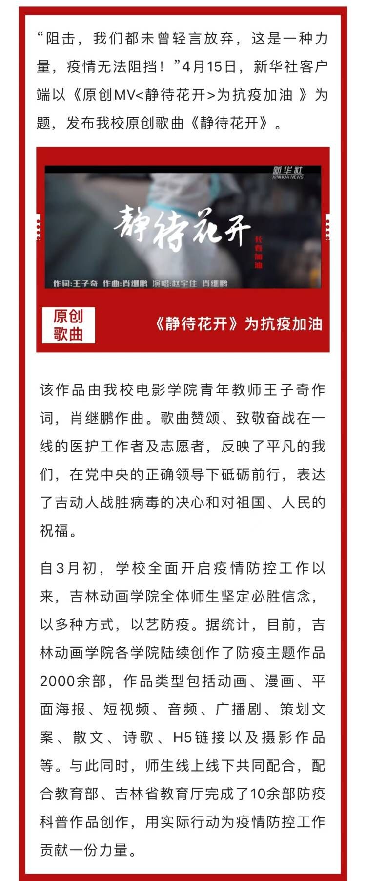 【JAI·防“疫”】新华社推播我校原创歌曲《静待花开》
