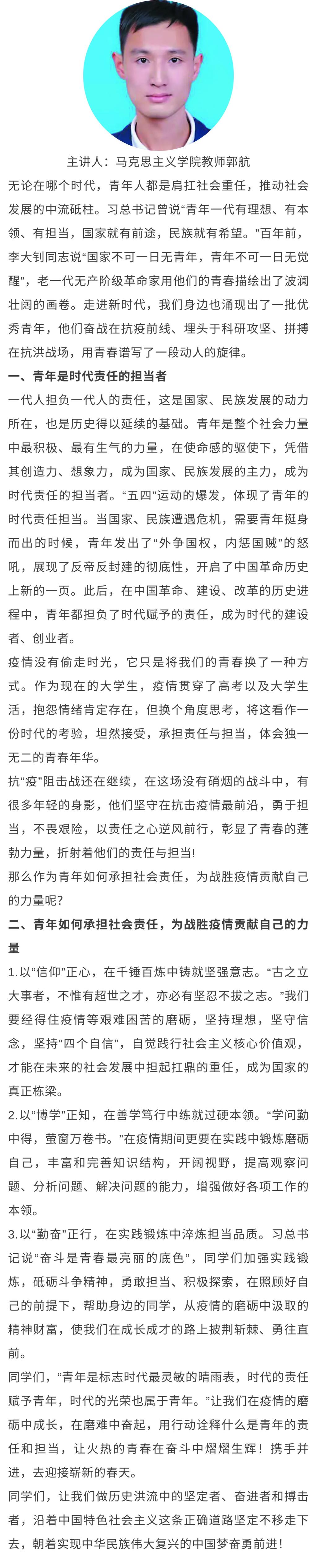 【JAI·防“疫”】开云手机web版登录入口马克思主义学院战“疫”思政微课第五讲——责任与担当