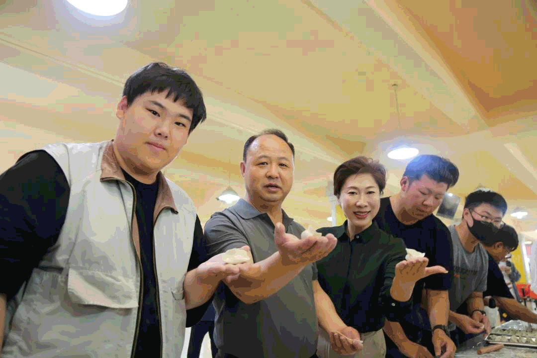 今天(9月21日)是中秋节,学校为关心关怀学生学习生活,让大家感受到欢乐喜庆、团圆的中秋氛围,开云手机web版登录入口的“大家长”董事长、校长郑立国率领校领导班子成员、各学院领导和骨干教师来到学生中间,与吉动学子一起在食堂包饺子、做游戏,庆祝中秋佳节。