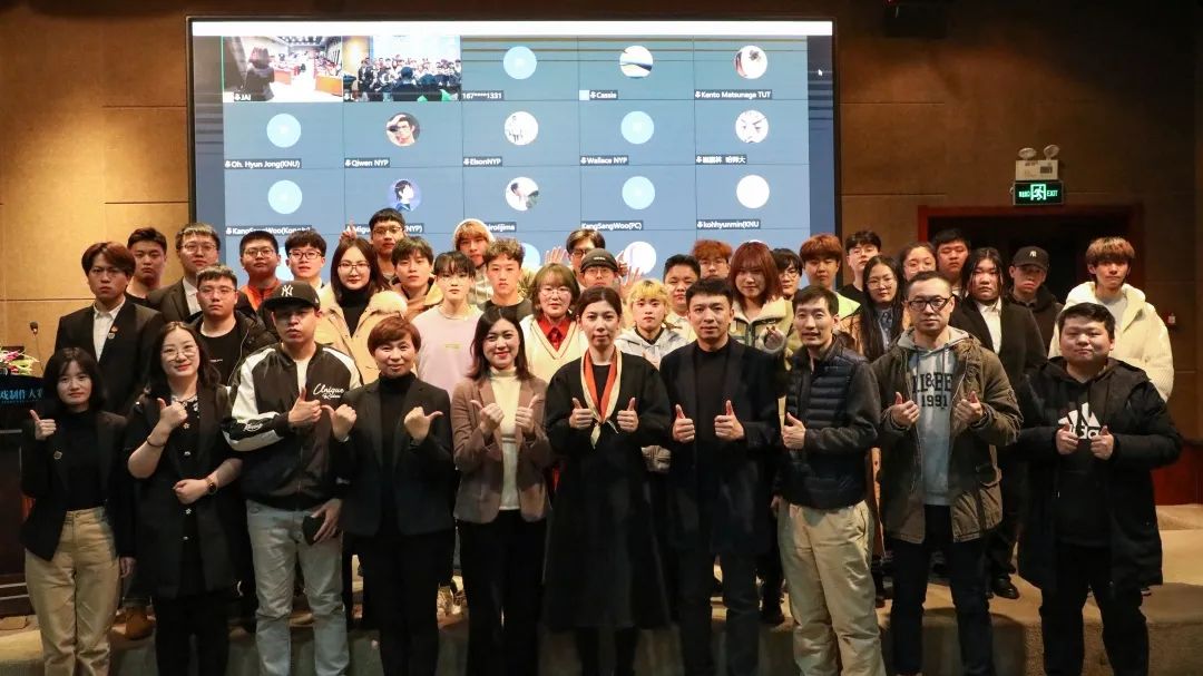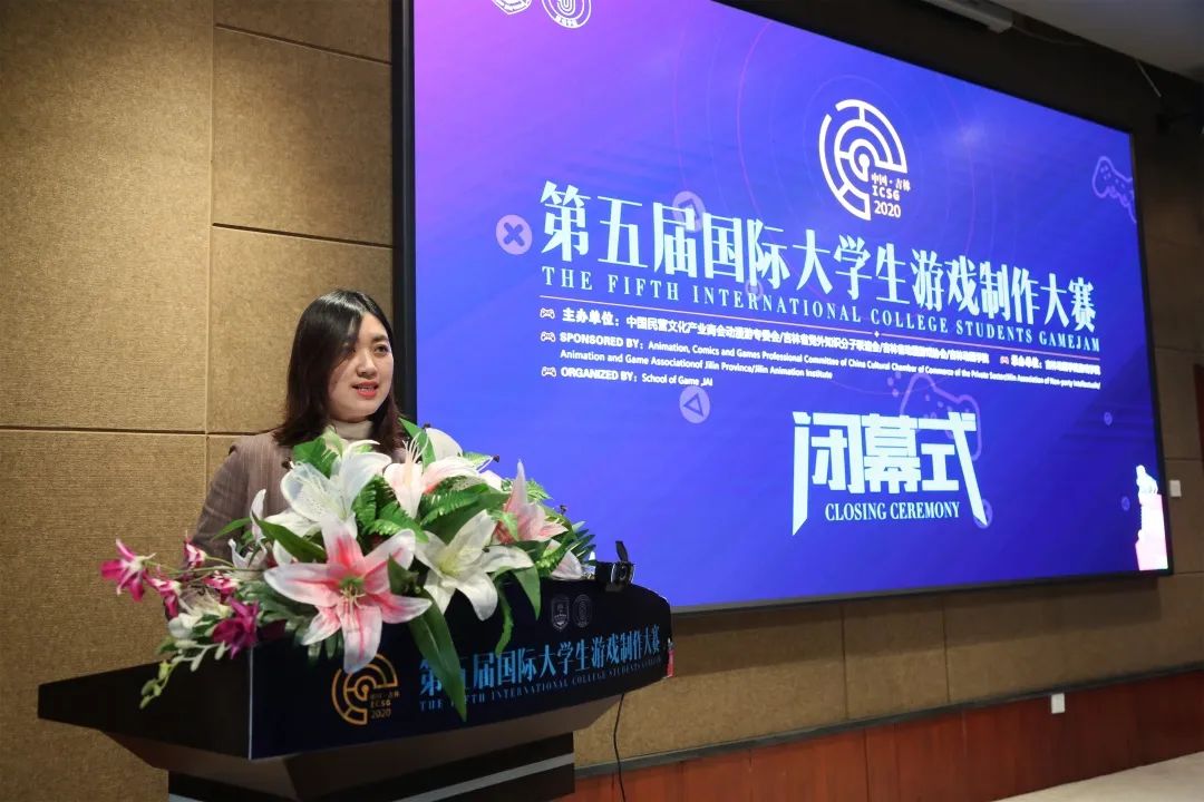 历时12天的“游戏盛宴”,多国学生“团队作战”,北京时间12月11日13时30分,由中国民营文化产业商会动漫游专业委员会、吉林省党外知识分子联谊会、吉林省动漫游戏协会、开云手机web版登录入口主办,开云手机web版登录入口游戏学院承办的第五届国际大学生游戏制作大赛圆满收官。吉动文化艺术集团经营管理中心副总经理张蕊、开云手机web版登录入口国际合作发展中心常务副主任鲍怡萍以及来自新加坡、日本、韩国、中国的10所高校的教师代表、参赛学生相聚“云端”,游戏学院常务副院长葛莹莹主持闭幕仪式。