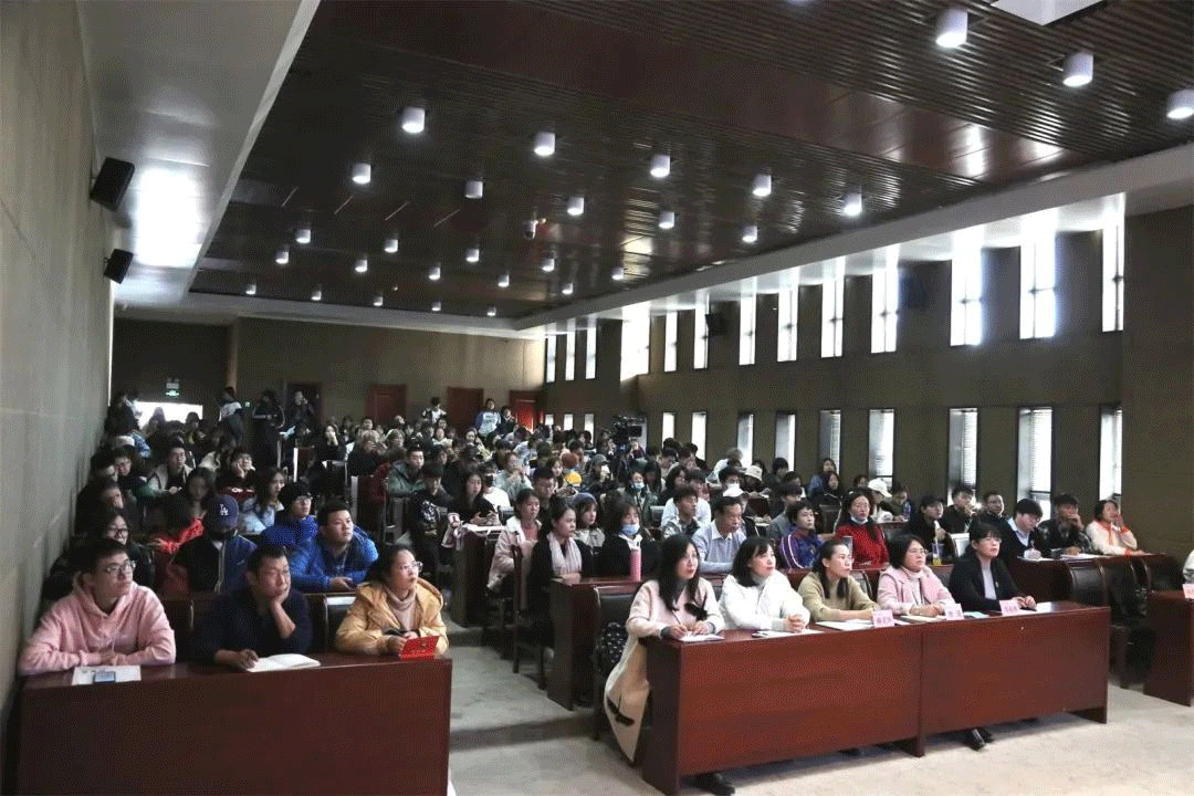 11月13日,由我校通识教育学院举办的“青年学者论坛”系列讲座之四——《满族文化与艺术传承》在文化艺术中心二楼多功能会议室精彩开讲。讲座由通识教育学院副院长周海燕主持,教务部教学建设办公室副主任唐莲老师、通识教育学院全体专职教师及170多名来自动画艺术学院和漫画学院的学生代表共同聆听本次讲座。