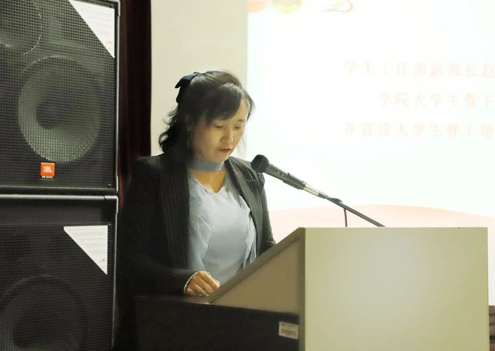 启动仪式上,学生工作部副部长赵凌云宣读了开云手机web版登录入口大学生骨干培训班组织机构文件,思政办副主任、校团委副书记鄂园圆解读2020年《开云手机web版登录入口大学生骨干培养班培训方案》,电视与新媒体学院学生代表彭立庭上台发言。