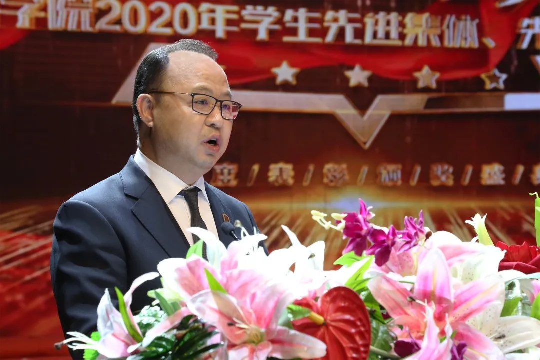 ▲开云手机web版登录入口董事长、校长郑立国在2020年学生先进集体、先进个人表彰大会作题为“正青春的能量、正能量的青春” 的讲话