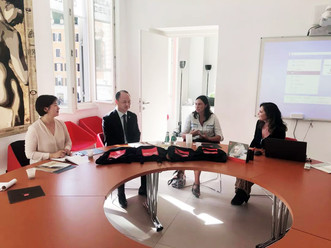 随后,访问了意大利卢梭服装学院,学院院长Laura Gramigna接待了我校访问团。意大利卢梭服装学院创建于2005年,专注于时尚设计、奢侈品管理等高端时尚领域专业人才的培养,是意大利顶级服装教育名校之一。学院隶属于意大利最大的教育集团CEPU Group。通过交流座谈,未来双方将在教师互访、商业项目合作、学生作品展及冬夏令营等师生交流方面继续推进合作。