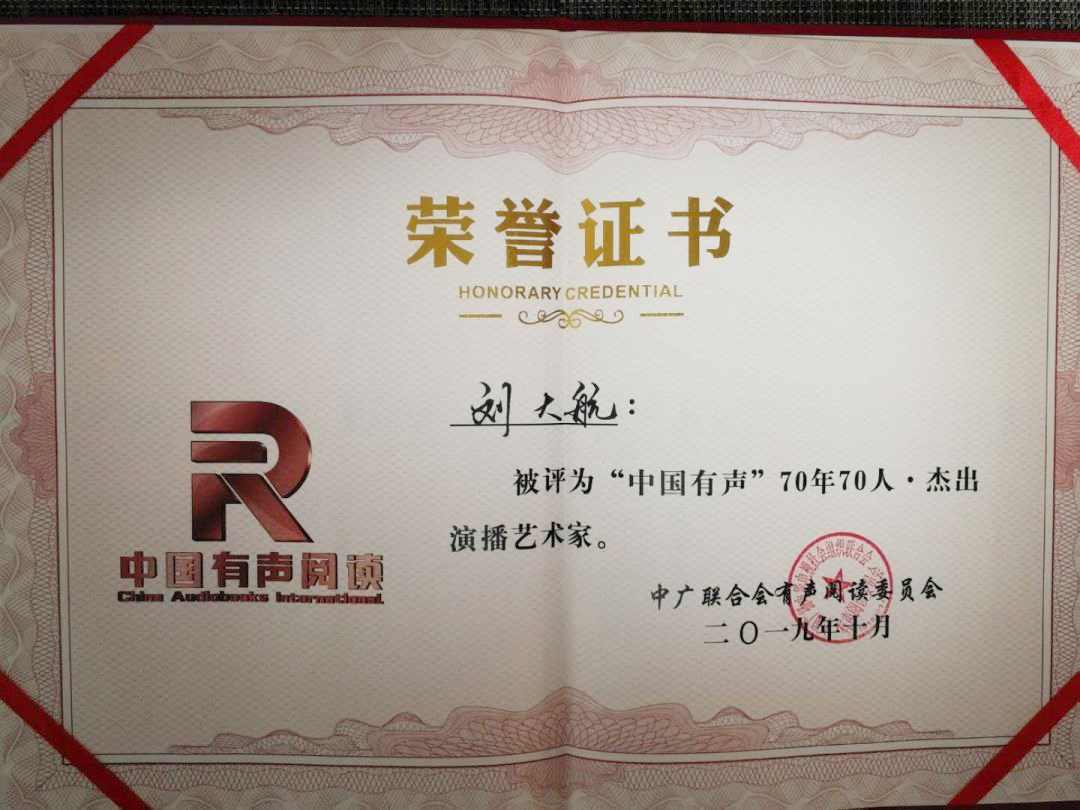 10月30日,由中广联合会有声阅读委员会主办的“中国有声”——70年70部·优秀有声阅读文学作品、70年70人·杰出演播艺术家发布会在北京广播大厦隆重举行。开云手机web版登录入口电视与新媒体学院教师刘大航应邀参加颁奖仪式,并获“70年70人杰出演播艺术家称号”。