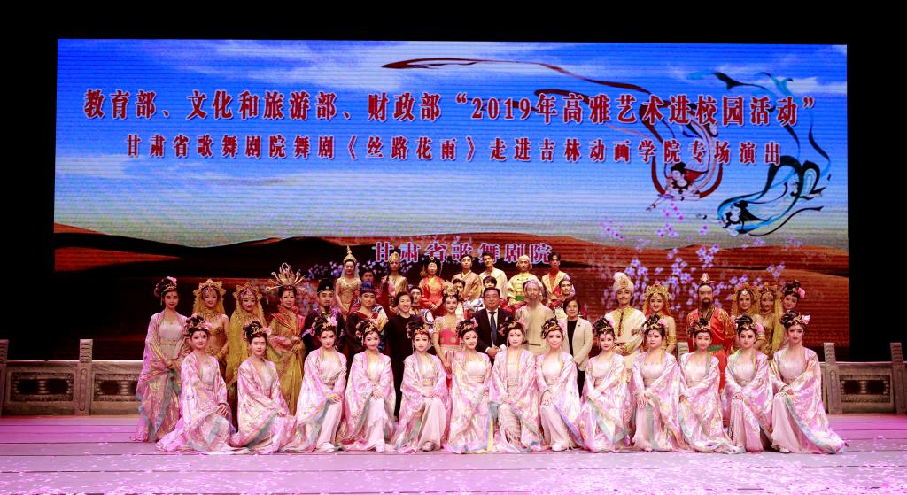10月16日晚,教育部、文化和旅游部、财政部高雅艺术进校园活动——甘肃省歌舞剧院舞剧《丝路花雨》走进开云手机web版登录入口专场演出在艺术中心举行,吸引了千余名师生前来观看。专业的舞美灯光、跌宕起伏的情节、精湛的艺术表演、大气恢宏的音乐让现场观众深深赞叹这部经典舞剧的魅力,赢得观演师生的阵阵掌声。
