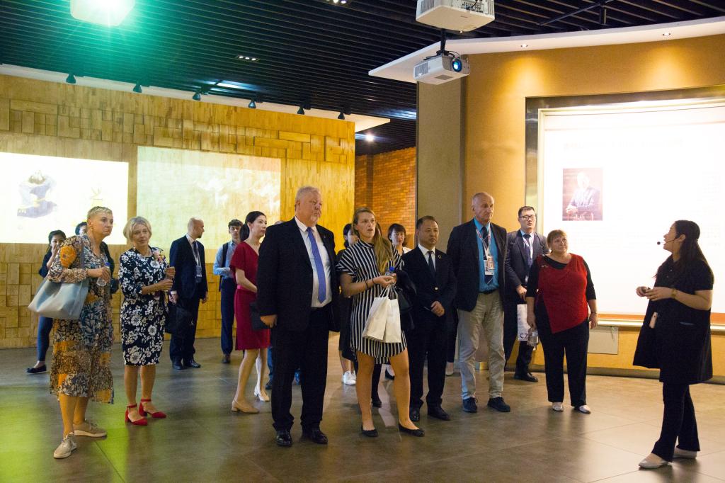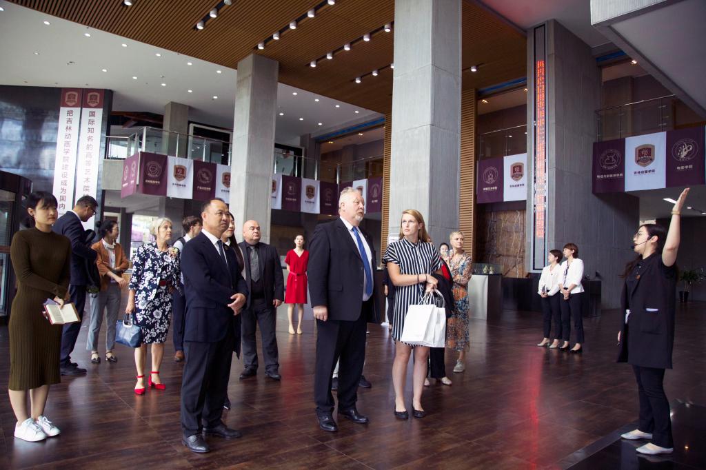 捷克帕尔杜比采州一行首先观看我校宣传片,听取讲解员介绍我校整体规模和建设情况。随后,考察团参观了学校校史馆、国际动漫博物馆、松林博物馆,了解我校办学精神、核心文化、办学特色、组织机构及学产对接模式,了解吉动文化艺术集团“以市场为主导、以技术为支撑、以内容为根本、以艺术为灵魂”的经营理念。
