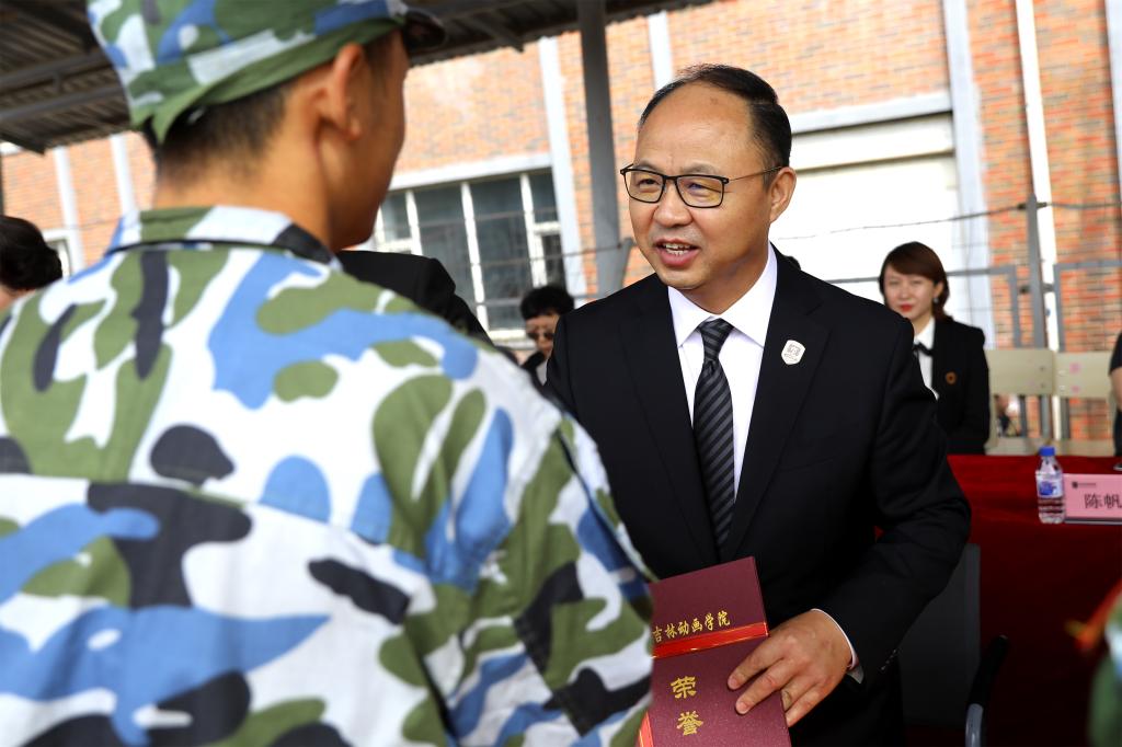 开云手机web版登录入口董事长、校长郑立国,党委书记、督导专员张炬,副董事长、副校长刘欣,副校长王春利、王晓岩、白立明,校长助理彭巍、金鑫,董事会董事张砚为,董事会监事李晶、许小多,中国人民解放军93246部队副旅长李伟上校、管理科长于伟佳中校、管理科参谋曹庆伟中尉,以及学校各学院、部门领导和老师、全体军训教官及2019级全体新生参加了此次活动。