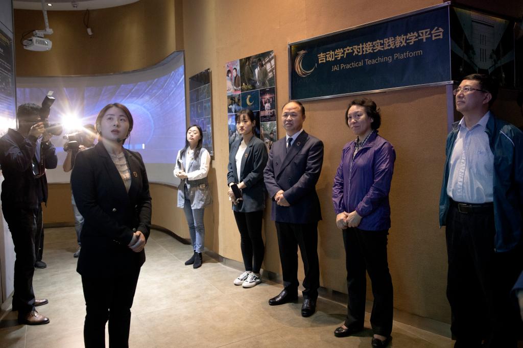 我校董事会行政运行中心主任李晶向调研组一行介绍了我校影视事业群、IP事业群、互娱事业群、文娱事业群、创意制作事业群、互创事业群六大学产对接实践教学平台基本情况,以及吉动学产对接实践教学平台在推动产业引领教学变革及特色人才培养方面的具体做法。