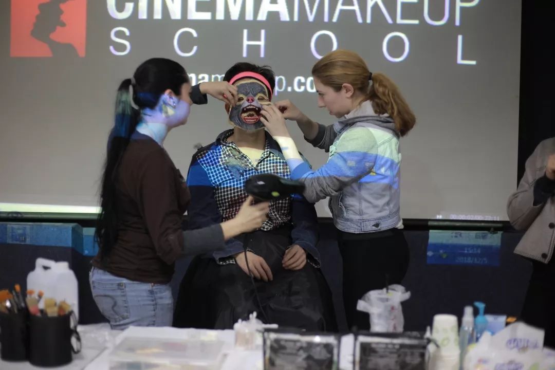 在活动开始前,陈雅臻首先向各位同学介绍了美国影视特效化妆学校,影视特效化妆学校是美国好莱坞最著名的专业特效化妆学校,大部分教师是奥斯卡奖、艾美奖获得者,或是世界知名艺术家。该校目前与哥伦比亚三星电影集团公司、环球电影公司、福斯公司、米高梅、派拉蒙电影公司等数十家娱乐公司合作。接收世界各国的学生来此学习。