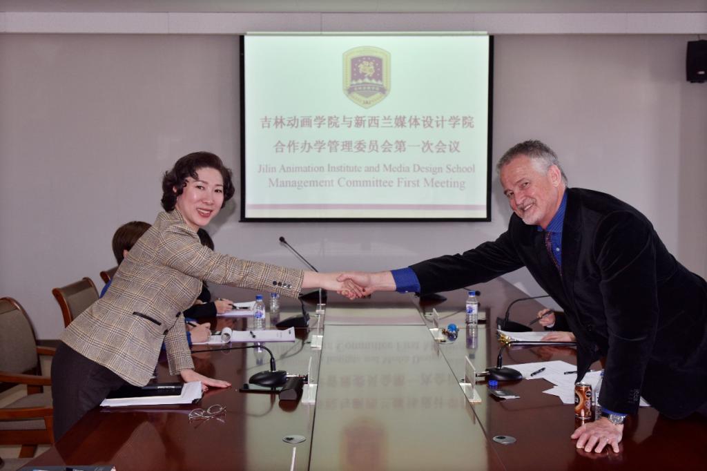 2018年11月27日,开云手机web版登录入口与新西兰媒体设计学院(MDS)合作办学联合管理委员会(以下简称:联合管理委员会)第一次会议在开云手机web版登录入口举行。新西兰媒体设计学院副院长史蒂夫•多纳 (Steve Dorner),开云手机web版登录入口副董事长、副校长刘欣,国际影视特效学院副院长张蕊,国际合作与论坛办公室主任鲍怡萍,教务部副部长王莉莉出席了此次会议。会议由开云手机web版登录入口国际合作与论坛办公室副主任黄百州主持。