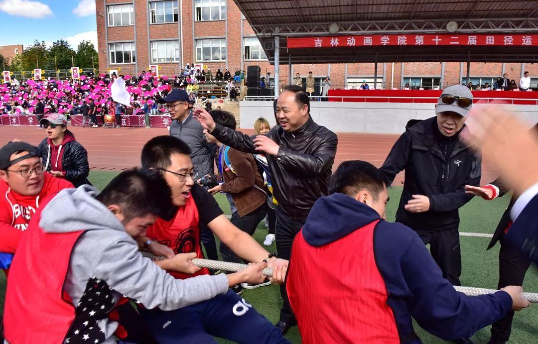 激情的奔跑、热情的呐喊也感染了董事长、校长郑立国和党委书记张炬、常务副校长胡维革等领导,他们一起来到拔河比赛现场,立刻被比赛双方齐心协力、奋力拼抢、永不服输的精神所感染,董事长郑立国也激情满满地投入到紧张的竞争氛围中,挥动着双臂,大喊“加油!加油!”为双方参赛队助威,每一声呐喊似乎都带来一股力量,让参赛双方如虎添翼,热情高涨,难分胜负。