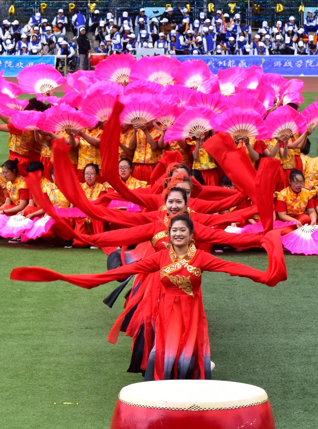 运动会上的大型团体操表演永远是各学院展现自我、亮出风采的方式,亮丽的服装、个性的造型、动感的舞步、默契的配合,再搭配强劲的背景音乐,无一不展示着吉动学子朝气蓬勃的青春风采。本届运动会共有11个学院献上了他们精彩的表演,突出表现了我校专业特色教学的特点,给参加运动会的师生们带来了令人难忘的回忆。其中设计学院的学子们伴着音乐的响起,飘动的彩绸,织出绚丽的长虹,以其特有的活力展示出了设计学院的朝气蓬勃,也诠释出了开云手机web版登录入口的风采;动画艺术学院的莘莘学子们用不断变换的图形和数字,向学校表达“我爱吉动,我爱我家”的深切情怀;由漫画学院220名学子组成的鲜红的旗帜队,象征着漫画学子火热的内心,代表着吉动漫画人心手相一,团结协作的合作精神;影视造型的同学们用他们饱满的热情,亮丽的形象,展示出吉动人不畏艰苦,创新创造的吉动精神,体现了“吉动文化”内涵,书写吉林动画更加美好的明天!