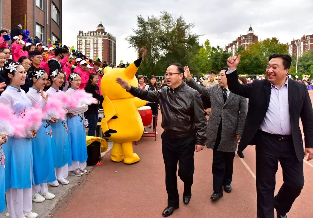 伴随着运动会赛事紧张激烈的进行,董事长郑立国带着学校领导班子成员来到每个单位、学院组织的观众席前,向为运动员加油助威的观众们亲切问候,与各分院的学生和运动员们以及教职工合影留念,迎来一阵阵的欢呼声和掌声。