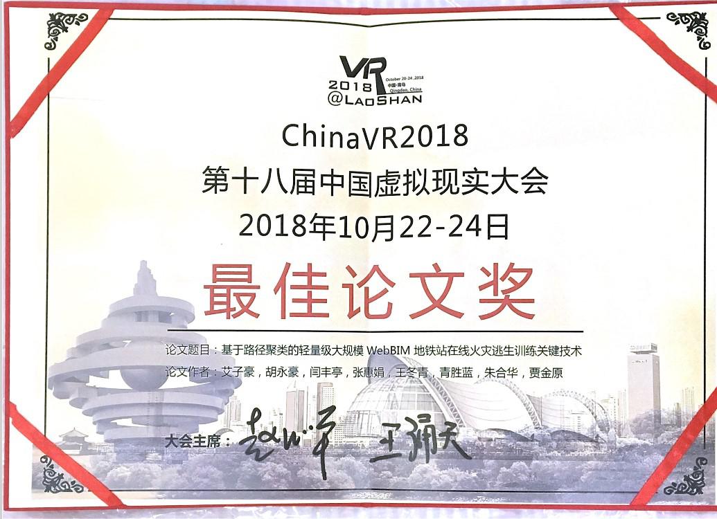 10月23日,第十八届中国虚拟现实大会暨第八届国际虚拟现实与可视化大会、第四届中国虚拟现实产学研大会及第一届国际虚拟现实技术及应用创新大赛在青岛盛大开幕。会上,开云手机web版登录入口与长春理工大学联合培养研究生艾子豪、指导教师贾金原的学术论文 “基于虚拟足迹聚类的轻量级Web3D地铁火灾逃生关键技术”被大会程序委员会推荐为“第18届中国虚拟现实大会最佳论文奖”荣誉。