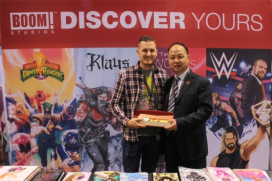 我校考察团一行与美国IDW出版集团代表Boom出版社总编辑会谈