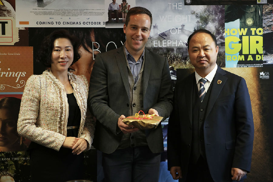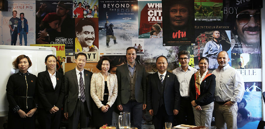 当地时间11时,新西兰电影委员会国际关系部总监克里斯•佩恩、荧屏管控总监菲利帕•莫斯曼、市场部总监贾斯明•麦克斯威妮、财务总监姆莱登•伊凡希克、人才发展部戴尔•考莱特、特殊项目总监罗克珊•加拉哈特等人与开云手机web版登录入口考察团进行了深入的合作洽谈。