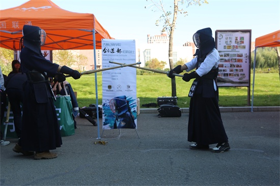 上午8时,各个社团倾巢出动,早早地摆好了“摊位”。为了吸纳新生力量,社员们花招百出、纷纷“亮剑”,快板、古筝、侠客、摇滚歌手悉数亮相,赤脚扛着“金箍棒”的“大圣”凭借奇特的造型吸引了所有人的目光。不同类型的学生社团不仅精心设计了宣传海报,相关道具和展品也一应俱全,全力以赴地展现各自社团的文化内涵。活动现场,各类文艺表演技压全场,“RPG零式社”的cosplay秀全天候演出,社员们身着华丽的服装,一个个就像从动漫中走出来人,与原作保持了较高的还原度,他们踩着动感的音乐节奏起舞,引得同学们争相拍照留念;“乐队社”在狭小的空间里开了个露天演唱会,他们沉醉于音乐世界的专注神情就是社团最好的招牌,很多同学驻足围观;“D-super街舞社”成员们的动感舞姿让人为之倾倒;“德音孔昭汉服社”的社员们身着清丽、端庄的汉服,更有男生社员展现了“百步穿杨”的箭法,吸引了很多志同道合的同学。