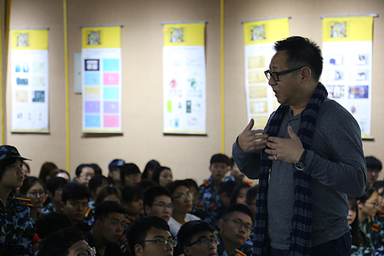 8月29日上午,广告学院多功能展厅里气氛喜庆而热烈。胡镜泉院长走到学生中间,为同学们开启大学的第一课。胡院长将自己的求学经历及广告人生与同学们分享,他讲到自己国外求学时带着坚定不移的广告梦想,痴迷于广告工作的乐趣,幸运地开始了他的工作历程。他在广告行业30余年,曾在香港、台湾知名国际广告公司里工作,组建奥美北京、广州、上海公司的经历,至今他仍会为好的广告片而感动,更加坚定了为广告行业的发展反哺教育事业的信心。他希望同学们在大学四年中沉下心来,打好基础,洞察生活,找到自己喜欢并享受的专业乐趣,确定自己的终身职业。胡镜泉院长表示,他将带领广告学院的教师团队,为广告行业的传承,培育新人,做有责任、有担当的教育。新生们与胡院长亲切互动,一名率真的男孩说:“我在网上看到了广告学院的宣传片,深受吸引,坚信这就是我想要的大学。”