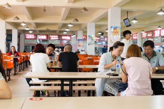 新生和家长在大学食堂里的第一顿饭(李泽林 摄)