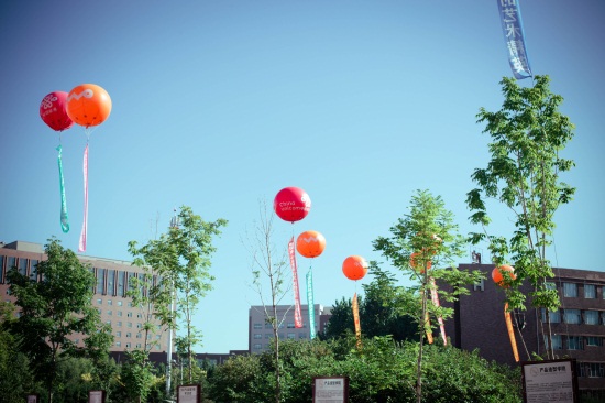 采访结束了,记者走在校园里,气球下飘动的彩带上一行大字格外醒目:起点更新,生活更新,校园更新,开启精彩大学路!