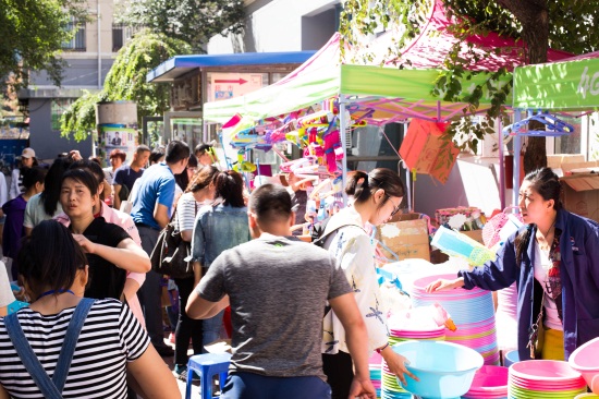 新生和家长采购生活用品(李泽林 摄)