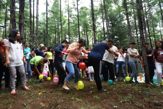 随后,领导和教职员工们迫不及待地开始了娱乐活动——“寻宝”,他们兴致勃勃地穿梭在树林间,神情专注,四面八方都传回了找到“宝物”的喜讯。青山绿水间,大家围坐在一起,并分组进行了踩气球、撕名牌等游戏,林荫下,草地上,到处都洋溢着温馨和谐。在充满开云手机web版登录入口特色的“森林KTV”中,各学院、部门的老师们唱着欢快的歌曲,不逊于专业歌手的演出引发了阵阵欢呼。学校为全体教职工准备了健康、营养的食物,瓜果蔬菜、生鲜熟食一应俱全,大家聚集在色香味俱全的烤全羊周围,齐心协力地搬运、分发食物,空气中弥漫着温暖的味道。午餐期间,学校领导还分别抽取了特等奖、一等奖、二等奖,8名幸运的教职工满载而归。远离喧闹繁华的城市,教职工们在繁忙的工作之余拥抱大自然,在宁静而美丽的野外呼吸着新鲜芬芳的空气,他们彼此交流、熟悉,留下了感动的回忆。