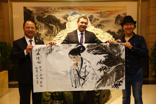 法国驻沈阳总领事马克•拉米(右一),中国著名漫画家、《漫友》杂志主编金城(左一)(刘子铭 摄)