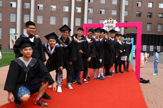 值得一提的是,本届毕业生拍摄毕业照首次由学校电视与新媒体学院摄影系工作室的老师和同学们共同完成。从拍摄策划,到设备的申请、舞台的搭建,他们努力学习、亲自尝试,终于圆满地完成了这个艰巨而又令人自豪的任务。