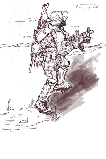 马跃川在大学学习动画分镜头设计,参军后,他曾想用动画记录军营生活,但条件不具备,他突然想到了用镜头记录战友们的生活,对镜头的构图、视角、明暗、焦距、近实远虚、色彩构成等一系列的专业知识,让马跃川拍摄到战友们不一样的英姿。在专业上马跃川严格要求自己,一有时间就拿起画笔训练自己的手绘以及数码绘画的能力,他说自己是体育生中画画最好的,美术生中体育最好的。他的战友们都笑称他是“部队CG第一人,弥补了部队士兵在数码绘画方面的空白”。