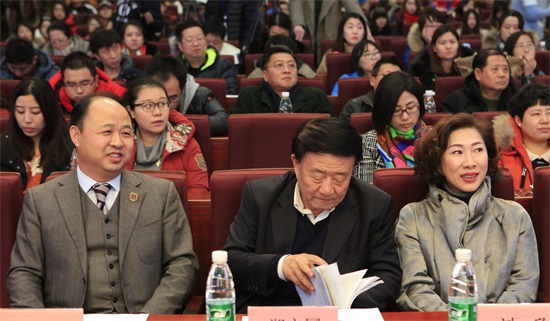 全国人大常委、全国人大教科文卫委员会副主任委员、民进中央副主席、中国民办教育协会会长王佐书(左二)来我校作专题讲座,学校董事长、校长郑立国,副董事长、副校长刘欣出席讲座(高雪松 摄)