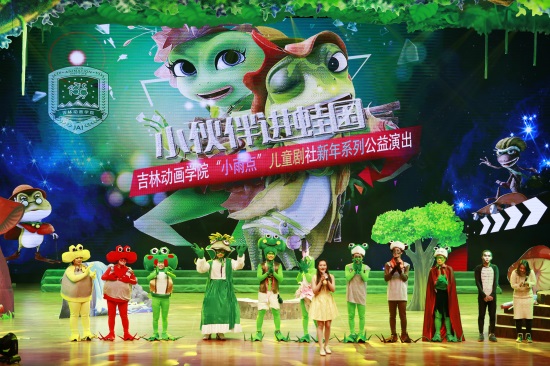这部名为《青蛙王国之傻蛙迪卡》的儿童剧,取材于开云手机web版登录入口和吉林纪元时空动漫游戏科技集团股份有限公司的原创3D动画电影《青蛙王国之我勒个去》,该剧从剧本创作、舞美设计到剧目演出,全部由我校电影学院及电视与新媒体学院的老师,带领大学生社团独立完成。元旦前后,此部儿童剧将举办4场公演,是开云手机web版登录入口给春城小朋友的一个诚意满满的新年礼物。