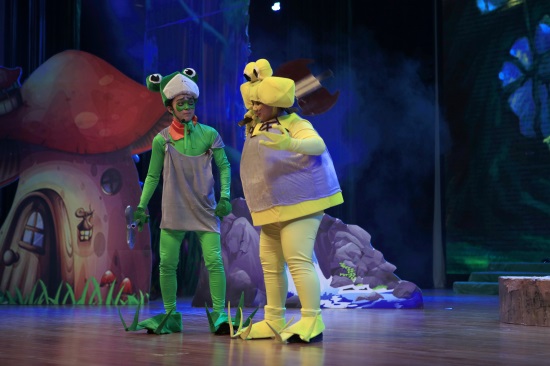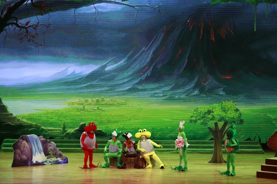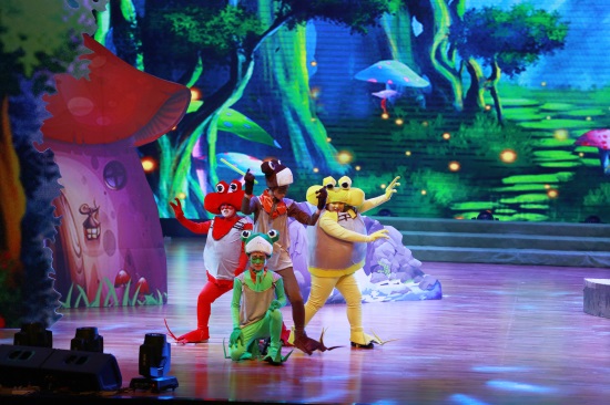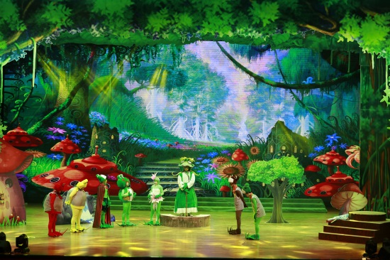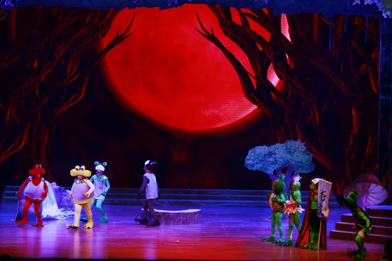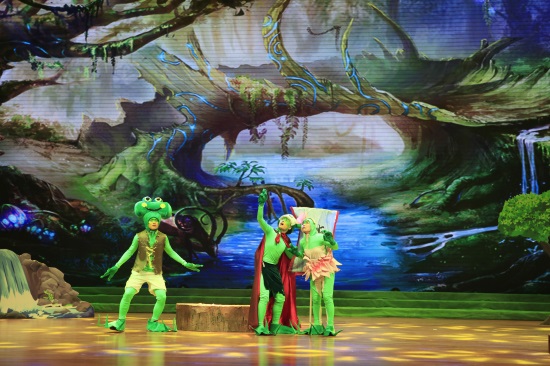 善良可爱的吉克公主、聪明逗趣的小雨点、搞笑的反派角色蛙岛四怪,都融合在一个充满正能量的故事之中。此部儿童剧在舞台布景上运用大型LED动画特效,同时结合现代舞台声光电的应用,通过剧中人物的精彩演绎,让观众仿佛步入了一个充满奇幻与童趣的“蛙国世界”,享受一场听觉和视觉的饕餮盛宴。