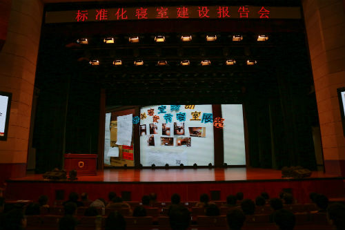为进一步推进我校标准化寝室建设进程,树立典型,建设文明、和谐、整洁、舒适的公寓环境,12月3日18时,由我校学工部和后勤服务管理中心主办的标准化寝室建设报告会于文化艺术中心隆重举行。