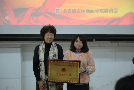 学校副校长、文化产业管理学院院长蒙一丁为获得先进个人代表颁奖