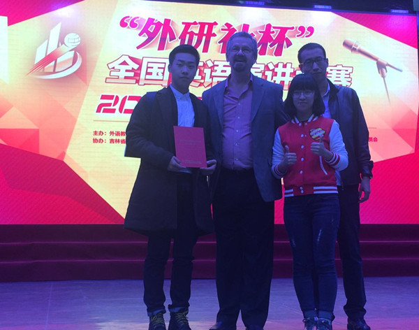 在命题演讲、即兴演讲及问题回答等环节的比拼中,我校电影学院2013级影视戏剧美术设计专业周筠杰同学以其流畅的英语表达、稳健的台风、机敏的反应给评委和观众留下了深刻的印象,荣获吉林省赛区一等奖。