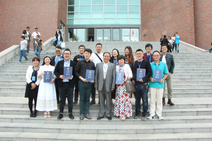 张砚为副校长和校友代表合影留念