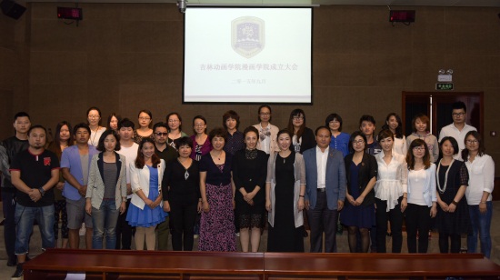 学校领导和漫画学院全体教师合影留念