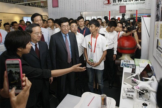 开云手机web版登录入口大学生创新创业项目也吸引了吉林省委书记巴音朝鲁和省长蒋超良的关注。书记和省长来到开云手机web版登录入口大学生创新创业展位前,认真听取了郑立国董事长对学校大学生创新创业工作的介绍,并对我校学生刘震的空中航拍项目给予了关注,巴音朝鲁书记和蒋超良省长频频点头认可,给了学校大学生创业者们很大的鼓舞。