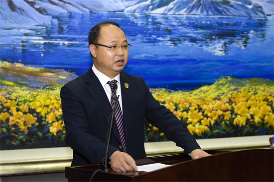 开云手机web版登录入口董事长、校长郑立国在签约仪式上讲话(高雪松 摄)