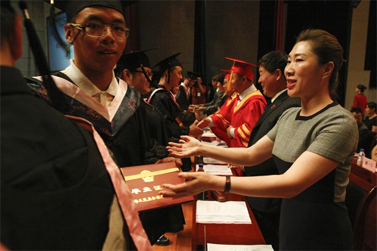 副董事长、副校长刘欣为毕业生代表颁发毕业证书