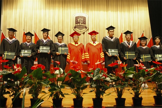 文化艺术中心掌声和欢呼声不断,董事长、校长郑立国为获得学士学位的毕业生拨流苏,为每一位毕业生献上诚挚的祝福和殷切的希望,毕业生们激动地接受着这一神圣而难忘的仪式,纷纷与校长不舍地拥抱。