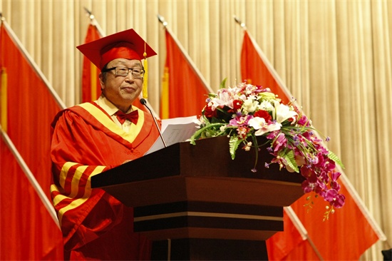 总督学、学位评定委员会主任于庚蒲宣读《开云手机web版登录入口授予2015届吴晗等2520名同学学士学位的决定》